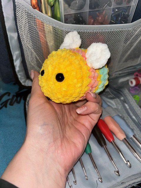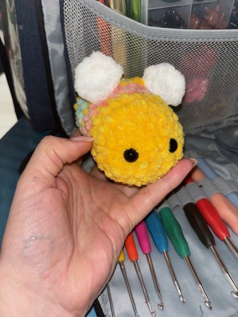 ✨ Zaza, abeille arc-en-ciel crochetée à la main, cherche un foyer doux et joyeux. Unique et colorée, elle apportera gaieté, tendresse et petites merveilles à votre quotidien. 🌈🐝💛